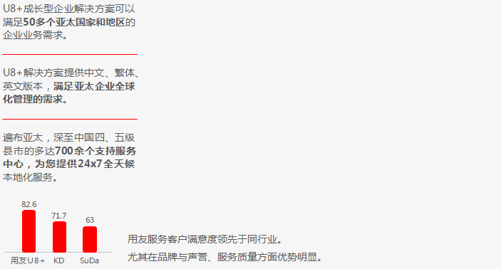 用友深耕中國及亞太市場(chǎng)25年,將中國企業(yè)的經(jīng)營(yíng)智慧及全球先進(jìn)管理思想和技術(shù)內化于U8+產(chǎn)品及方案,全面滿(mǎn)足您在不同的發(fā)展階段的管理訴求,追求實(shí)效,快速應用,通過(guò)數據驅動(dòng)實(shí)現深度價(jià)值創(chuàng )造。